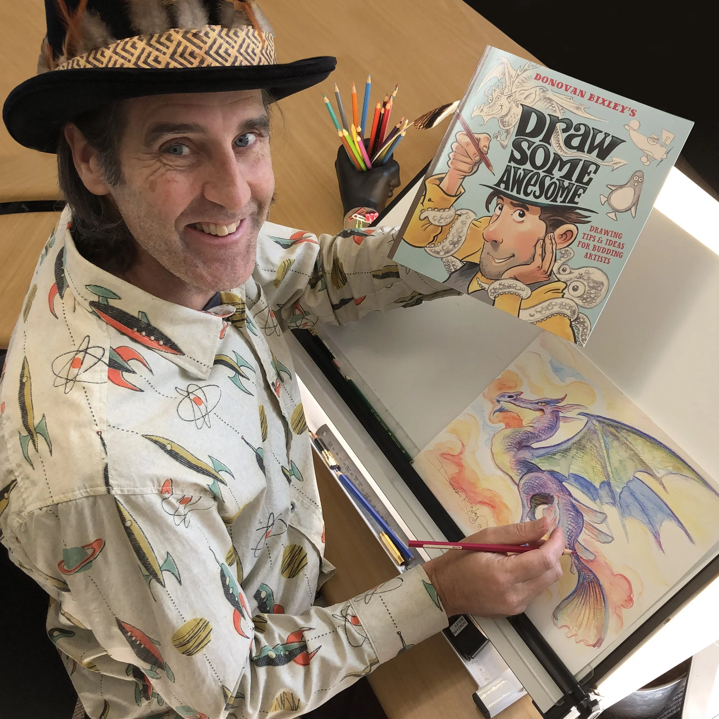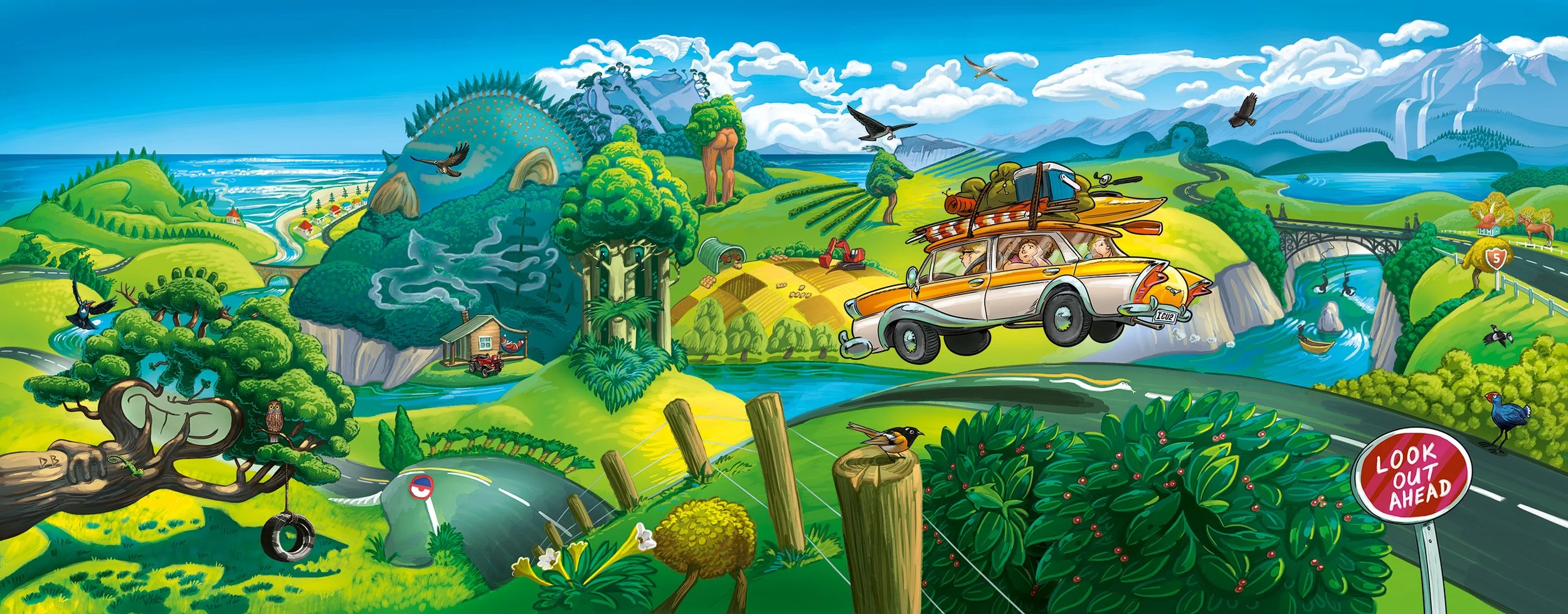 Today I still live in Taupō beside the great lake. Now I make books as my full-time job. I’ve made over 130 books, so there’s plenty of Donovan Bixley books for all ages and tastes – and of course all of my books are jam-packed with colourful fun illustrations. Check out my most popular titles on the BOOKS page. Or find out more about my most recent book below.